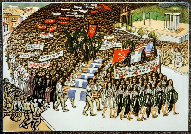 Το 1944, το ΕΑΜ Καλλιτεχνών αποφασίζει να συμμετάσχει στην Πανελλήνια Έκθεση, προκαλώντας την οργή των κατακτητών. Οι Γερμανοί την κλείνουν και ρίχνουν στα κελιά των φυλακών Αβέρωφ τους Τάσσο, Κεφαλληνό, Κορογιαννάκη και Κανά. Η κατακραυγή του καλλιτεχνικού κόσμου οδηγεί στην αποφυλάκισή τους, αλλά το μήνυμα έχει ήδη σταλεί: η τέχνη μπορεί να είναι επικίνδυνη, όταν μιλά για την ελευθερία.