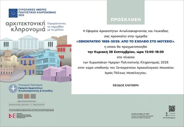 Την Κυριακή 28 Σεπτεμβρίου, στο Ξενοκράτειο Αρχαιολογικό Μουσείο Μεσολογγίου, θα πραγματοποιηθεί ημερίδα με τίτλο «Ξενοκράτειο 1885-2025: Από το Σχολείο στο Μουσείο». Το ιστορικό κτήριο, θεμελιωμένο το 1885, λειτούργησε επί δεκαετίες ως σχολείο πριν μετατραπεί σε μουσείο το 2011. Παλαιοί δάσκαλοι και μαθητές θα καταθέσουν τις μνήμες τους, ενώ ειδικοί θα παρουσιάσουν την πορεία της αποκατάστασης και την εξέλιξη του Μουσείου ως φορέα πολιτισμού και εκπαίδευσης.