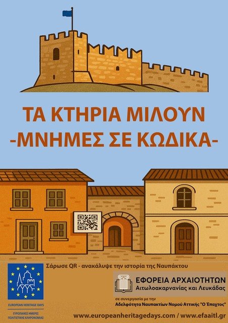 Στις 26 και 27 Σεπτεμβρίου, η Ναύπακτος φιλοξενεί τη δράση «Τα Σπίτια Μιλούν – Μνήμες σε Κώδικα», μια πρωτότυπη ψηφιακά υποστηριζόμενη περιπατητική εμπειρία που ζωντανεύει τη μνήμη μνημείων και ιστορικών κτηρίων της πόλης. Από τα τείχη του Κάστρου και το Βεζίρ τζαμί, έως το Αρχοντικό Μπότσαρη και την Παπαχαραλάμπειο Βιβλιοθήκη, οι συμμετέχοντες θα ανακαλύψουν ιστορίες μέσα από προφορικές μαρτυρίες, φωτογραφίες και QR codes που θα παραμείνουν ως μόνιμη ψηφιακή πύλη πληροφόρησης.