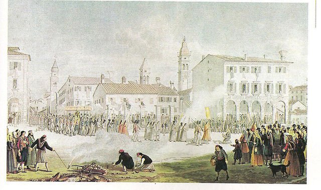 Οι πρώτοι που χρησιμοποιούν ευρέως τα πυροτεχνήματα στην Ευρώπη, και μάλιστα σε υπαίθριες εορταστικές εκδηλώσεις, είναι αρχικά οι Ισπανοί και αμέσως μετά οι Ιταλοί. Από την Ιταλία τα πυροτεχνήματα περνούν στα Επτάνησα.