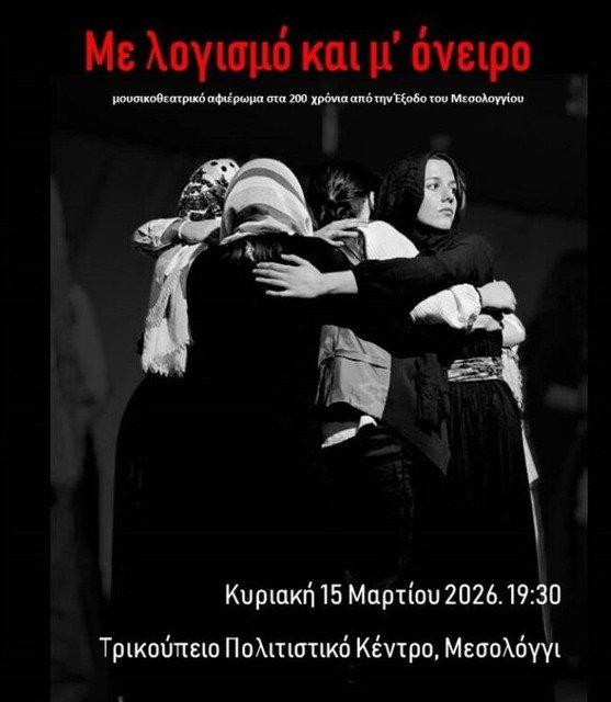 Ο Δήμος Ιερής Πόλης Μεσολογγίου υποδέχεται το Μουσικό Σχολείο Πειραιά σε μια μουσικοθεατρική παρουσίαση με τίτλο «Με λογισμό και μ’ όνειρο», η οποία θα πραγματοποιηθεί την Κυριακή 15 Μαρτίου 2026 και ώρα 7:00 μ.μ. στο Τρικούπειο Πολιτιστικό Κέντρο Μεσολογγίου, σε μια εκδήλωση που οργανώνεται ώστε να τιμηθεί με καλλιτεχνικό τρόπο μια από τις σημαντικότερες επετείους της νεότερης ελληνικής ιστορίας, καθώς συμπληρώνονται διακόσια χρόνια από την Έξοδο του Μεσολογγίου, γεγονός που σημάδεψε βαθιά την πορεία της Ελληνικής Επανάστασης και διαμόρφωσε ένα από τα πιο ισχυρά σύμβολα αγώνα και αυτοθυσίας.