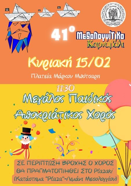 - Χαρακτήρας: Παιδική αποκριάτικη εκδήλωση στο πλαίσιο του 41ου Μεσολογγίτικου Καρναβαλιού