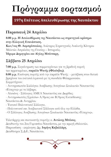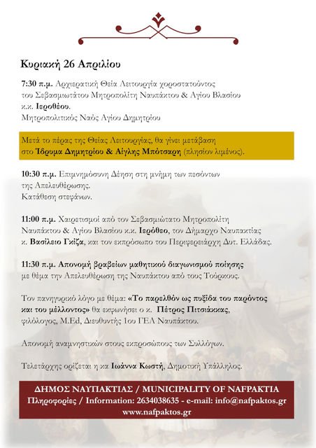 - Τίτλος: 197η Επέτειος Απελευθέρωσης της Ναυπάκτου