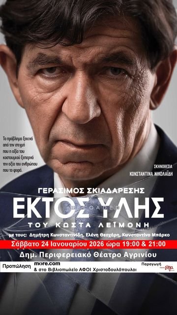 Το βραβευμένο έργο «Εκτός Ύλης reloaded» του Κώστα Λεϊμονή επιστρέφει για δεύτερη χρονιά, μετά τις συνεχόμενες sold out παραστάσεις του σε Θεσσαλονίκη και σε όλη την Ελλάδα. Αυτή τη φορά κάνει στάση στο Αγρίνιο, το Σάββατο 24 Ιανουαρίου 2026, στο Δημοτικό Περιφερειακό Θέατρο Αγρινίου, με δύο παραστάσεις, στις 7:00 μ.μ. και στις 9:00 μ.μ.