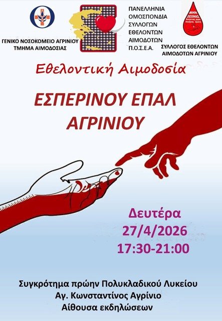 - Τίτλος: Εθελοντική Αιμοδοσία Εσπερινού ΕΠΑΛ Αγρινίου