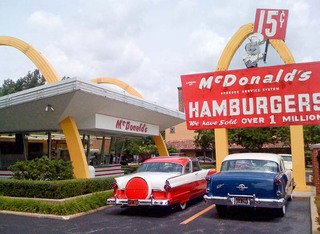 Το πρώτο κατάστημα McDonald’s είχε ιδρυθεί αρκετά νωρίτερα, το 1940, από τους αδελφούς Ρίτσαρντ και Μορίς ΜακΝτόναλντ στο Σαν Μπερναντίνο της Καλιφόρνιας. Το 1948 εισήγαγαν μια ρηξικέλευθη ιδέα για την εποχή: ένα μοντέλο γρήγορης εστίασης βασισμένο στις χαμηλές τιμές, στην ταχύτατη εξυπηρέτηση και στη γραμμή παραγωγής για την προετοιμασία των προϊόντων.