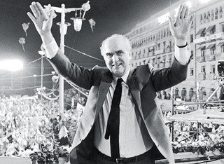 1989 – Ο Ανδρέας Παπανδρέου, στη διάρκεια συγκέντρωσης στο Περιστέρι, αναφωνεί το περίφημο «Τσοβόλα, δώσ’ τα όλα». Το «Τσοβόλα δώσ’ τα όλα» ήταν ένα αυτοσχέδιο σύνθημα μπαλκονιού, προϊόν διαδραστικής επαφής του Ανδρέα με το «πράσινο» πλήθος στην προεκλογική συγκέντρωση του ΠΑΣΟΚ, στο Περιστέρι, τον Απρίλιο του 1989. Το ΠΑΣΟΚ είχε κλείσει μια οχταετία στην κυβέρνηση, αλλά η πορεία της οικονομίας και πολύ περισσότερο το σκάνδαλο Κοσκωτά είχαν προκαλέσει φθορά που θα αποτυπωνόταν στην εκλογική ήττα, δύο μήνες αργότερα. Η πρώτη κυβέρνηση ΠΑΣΟΚ, από το ‘81 έως το ‘85, ακολούθησε μια ανεξέλεγκτη «φιλολαϊκή» πολιτική, με αυξήσεις μισθών και συντάξεων, παροχές επιδομάτων, διορισμούς, κρατικοποιήσεις εταιριών κ.α.