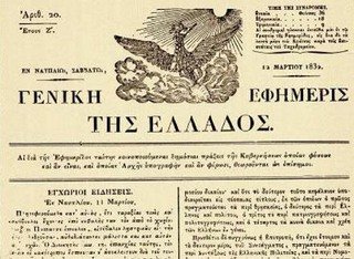 1825 – Εκδίδεται το πρώτο φύλλο της Γενικής Εφημερίδος της Ελλάδος, προδρόμου της Εφημερίδας της Κυβερνήσεως. Διευθυντής της ο Θεόκλητος Φαρμακίδης. Ήταν το επίσημο έντυπο της Διοίκησης. Κυκλοφόρησε από τις 7 Οκτωβρίου του 1825 μέχρι τις 23 Μαρτίου του 1832. Επί επτά συνεχόμενα έτη κάλυπτε τις ανάγκες της Κυβέρνησης και είναι προδρομικό έντυπο της Εφημερίδας της Κυβερνήσεως. Οι τόποι έκδοσής του θα είναι διαδοχικά το Ναύπλιο, η Αίγινα, ο Πόρος. Εκδότες του διετέλεσαν οι Θεόκλητος Φαρμακίδης (1825-1827), Γεώργιος Χρυσίδης (1827-1831), Ιωάννης Γαλιάτσας (1831-1832).