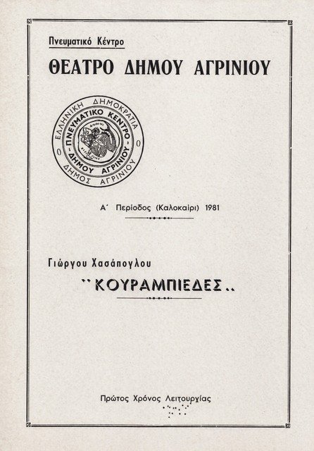Παραπομπές: 1. Πρακτικά Δημοτικού Συμβουλίου 1981, σελ. 235 – 237 | 2. Πνευμ. Κέντρο Δ. Αγρινίου, Υπόμνημα της 27.5.1983 στο Υπουργείο Πολιτισμού, σελ. 6. | 3. Λ. Παπαδόπουλος, στήλη Mατιές, εφ. Tα NEA, 21.7. 1997 | 4. Η Λαλούλα Χρυσικοπούλου γεννήθηκε στο Αγρίνιο. Αποφοίτησε από τηνβΑρχιτεκτονική Σχολή του Πανεπιστημίου της Φλωρεντίας (1977), το τμήμα σκηνογραφίας της Α.Σ.Κ.Τ. με δάσκαλο το Β. Βασιλειάδη και το τμήμα σκηνογραφίας-ενδυματολογίας του Αθηναϊκού Τεχνολογικού Ινστιτούτου Δοξιάδη. Παρακολούθησε το τμήμα σκηνογραφίας της Academia di Belle Arti της Φλωρεντίας, καθώς και το τμήμα σκηνοθεσίας της Σχολής Σταυράκου. Συνεργάστηκε με το Εθνικό Θέατρο, το Κ.Θ.Β.Ε., την Εθνική Λυρική Σκηνή, με ΔΗ.ΠΕ.ΘΕ. και με πολλούς ιδιωτικούς θιάσους. Έργα της έχουν παρουσιαστεί στα Φεστιβάλ Επιδαύρου, Αθηνών, Δημητρίων, Άργους, σε πολλές χώρες του εξωτερικού, καθώς και σε εκθέσεις στην Ελλάδα και την Αμερική. Το 2000 σχεδίασε για την Ελληνική Ολυμπιακή Επιτροπή τα νέα κοστούμια των ιερειών της Τελετής Αφής της Ολυμπιακής Φλόγας. Διετέλεσε μέλος της Καλλιτεχνικής επιτροπής του Εθνικού Θεάτρου κατά την περίοδο 1985-1994. Ανέλαβε αναπληρώτρια διευθύντρια του Εθνικού Θεάτρου και τέλος διευθύντρια του ίδιου θεάτρου μέχρι το τέλος του 1994. Από το ακαδημαϊκό έτος 1999 διδάσκει «Σκηνογραφία και αισθητική του θεάτρου» στο Τμήμα Θεατρικών Σπουδών του Πανεπιστημίου Αθηνών, ως επιστημονική συνεργάτιδα. Χαρακτηριστικοί σταθμοί της σκηνογραφικής της διαδρομής (αριθμεί μέχρι σήμερα πάνω από 150 σκηνογραφίες), πριν τη συνεργασία της με το «Θέατρο Δήμου Αγρινίου», ήταν οι παραστάσεις: Κοκτέιλ πάρτυ (θίασος Βεργή, 1970), Οιδίπους Τύραννος (θ. Χατζίσκου-Νικηφοράκη, 1977), Παθήματα (Κ.Θ.Β.Ε., 1977), Δούλες (Κ.Θ.Β.Ε., 1979), Γιορτές στην κόλαση και Εσκοριάλ (Κ.Θ.Β.Ε., 1979), Άντρας ίσον άντρας, του Μπ. Μπρεχτ (Εθνικό Θέατρο 1980, σκην. Γ. Χουβαρδάς). | 5. Ο Λέων Κουκούλας ήταν Έλληνας θεατρικός κριτικός, συγγραφέας και μεταφραστής. Γεννήθηκε το 1894 στην Ερμούπολη της Σύρου. Σπούδασε θέατρο, φιλοσοφία και Καλές Τέχνες σε πανεπιστήμια της Γερμανίας και της Γαλλίας. Πρωτοεμφανίστηκε στα γράμματα γράφοντας ποίηση στο περιοδικό Νουμάς, το 1917. Μετέφρασε πολλούς ξένους συγγραφείς, ανάμεσα στους οποίους ο Ερρίκος Ίψεν και ο Μολιέρος. Από το 1937 ως το 1946 ήταν καλλιτεχνικός διευθυντής του Εθνικού Θεάτρου. Το 1943 ανέλαβε καλλιτεχνικός διευθυντής του νεοσύστατου τότε Κρατικού Θεάτρου Θεσσαλονίκης, που είχε ιδρύσει η δοσίλογη κυβέρνηση Ράλλη. Από το 1959 ως το θάνατό του ήταν πρόεδρος της Εταιρείας Ελλήνων Λογοτεχνών.