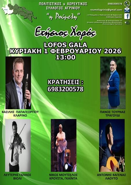Ο Πολιτιστικός και Χορευτικός Σύλλογος Αγρινίου «η Ρούμελη» προσκαλεί τα μέλη και τους φίλους του στον ετήσιο χορό του, σε μια μεγάλη γιορτή παραδοσιακής μουσικής και συνάντησης. Η εκδήλωση θα πραγματοποιηθεί την Κυριακή 1 Φεβρουαρίου 2026, στις 1.00 μ.μ., στον χώρο Lofos Gala, και υπόσχεται ένα αυθεντικό λαϊκό γλέντι με καταξιωμένους μουσικούς και τραγουδιστές της δημοτικής παράδοσης.