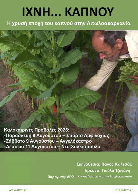 Με τρεις θερινές στάσεις σε Σπάρτο, Αγγελόκαστρο και Νέο Χαλκιόπουλο, συνεχίζεται το ταξίδι του ιστορικού ντοκιμαντέρ «Ίχνη Καπνού», που επιχειρεί να φωτίσει μια ξεχασμένη πτυχή της τοπικής ιστορίας της Αιτωλοακαρνανίας: την καλλιέργεια του καπνού και τους κοινωνικούς αγώνες των καπνεργατών.