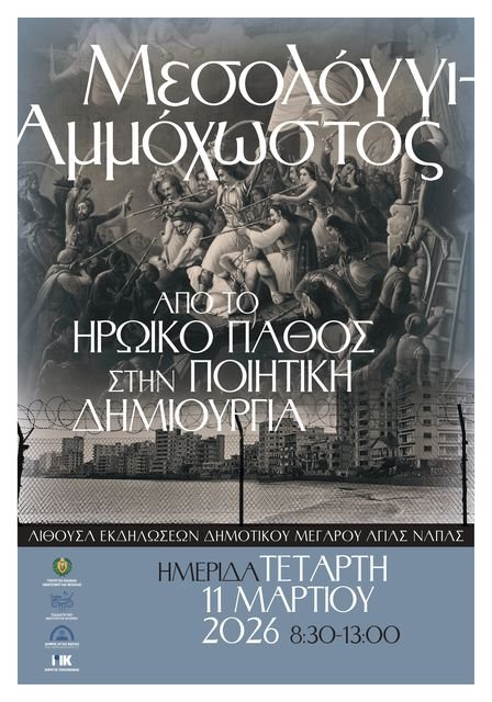 Η ιστορική μνήμη του ελληνισμού συχνά γεννιέται μέσα από τραύματα που μετατρέπονται σε σύμβολα. Η ηρωική έξοδος του Μεσολογγίου, γεγονός που σφράγισε την πορεία της Ελληνικής Επανάστασης, συνεχίζει να λειτουργεί ως πηγή έμπνευσης για τη συλλογική συνείδηση, ενώ η τραγική μοίρα της Αμμοχώστου, πόλης που παραμένει πληγωμένη από την κατοχή, προσθέτει ένα σύγχρονο ιστορικό βάρος σε αυτή τη διαρκή αναμέτρηση μνήμης και δημιουργίας. Μέσα σε αυτό το πλαίσιο οργανώνεται η ημερίδα με τίτλο «Μεσολόγγι – Αμμόχωστος: από το ηρωικό πάθος στην ποιητική δημιουργία», μια συνάντηση αφιερωμένη στη σχέση ανάμεσα στο ιστορικό βίωμα, στη μνήμη των αγώνων, στη δύναμη της τέχνης που μεταπλάθει την τραγωδία σε λόγο ποιητικό, σε στοχασμό πολιτισμικό, σε δημιουργία που επιτρέπει στην ιστορία να μετατρέπεται σε ζωντανή εμπειρία για τις επόμενες γενιές.