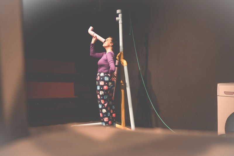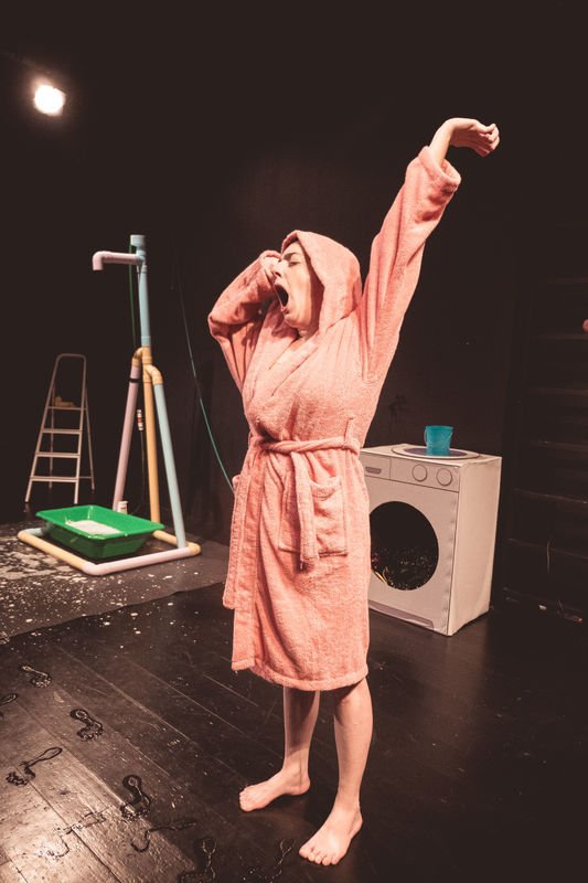Ήταν μια παράσταση που αφηγούνταν χωρίς λόγια την ιστορία μιας ολόκληρης μέρας από τη ζωή ενός μωρού μέσα στο σπίτι. Το μωρό ανακαλύπτει τον κόσμο γύρω του μέσα από ήχους, σκιές, κινήσεις και παιχνίδι, κρύβεται και εμφανίζεται, αγγίζει και παρατηρεί, παίζει με ό,τι του μοιάζει με παιχνίδι και μετατρέπει το καθημερινό σε εμπειρία. Φτερά που πετούν, μπάλες που πέφτουν, χρώματα που αλλάζουν, νερό που κυλάει και ένας μικρός άνθρωπος που μέσα από το παιχνίδι και την επανάληψη προχωρά από το βρέφος στο παιδί, με τρόπο φυσικό και αβίαστο, χωρίς καμία ανάγκη επεξήγησης.