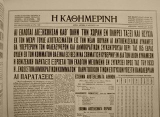1919 – Κυκλοφορεί το πρώτο φύλλο της εφημερίδας «Η Καθημερινή».