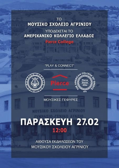 Μια ξεχωριστή καλλιτεχνική σύμπραξη πρόκειται να πραγματοποιηθεί την Παρασκευή 27 Φεβρουαρίου στο Αγρίνιο, όπου το Μουσικό Σχολείο της πόλης, ανοίγοντας τις πόρτες του για να υποδεχθεί τους μαθητές και τους εκπαιδευτικούς του Αμερικανικού Κολλεγίου Ελλάδος PIERCE COLLEGE από τα Σπάτα Αττικής, δημιουργεί την ευκαιρία για μια ουσιαστική συνάντηση που δεν περιορίζεται σε μια απλή εκπαιδευτική επίσκεψη αλλά μετατρέπεται σε μια ζωντανή ανταλλαγή εμπειριών, ιδεών και ήχων, καθώς η μουσική λειτουργεί ως κοινή γλώσσα μέσα από την οποία οι νέοι επικοινωνούν, συνεργάζονται και χτίζουν δεσμούς.