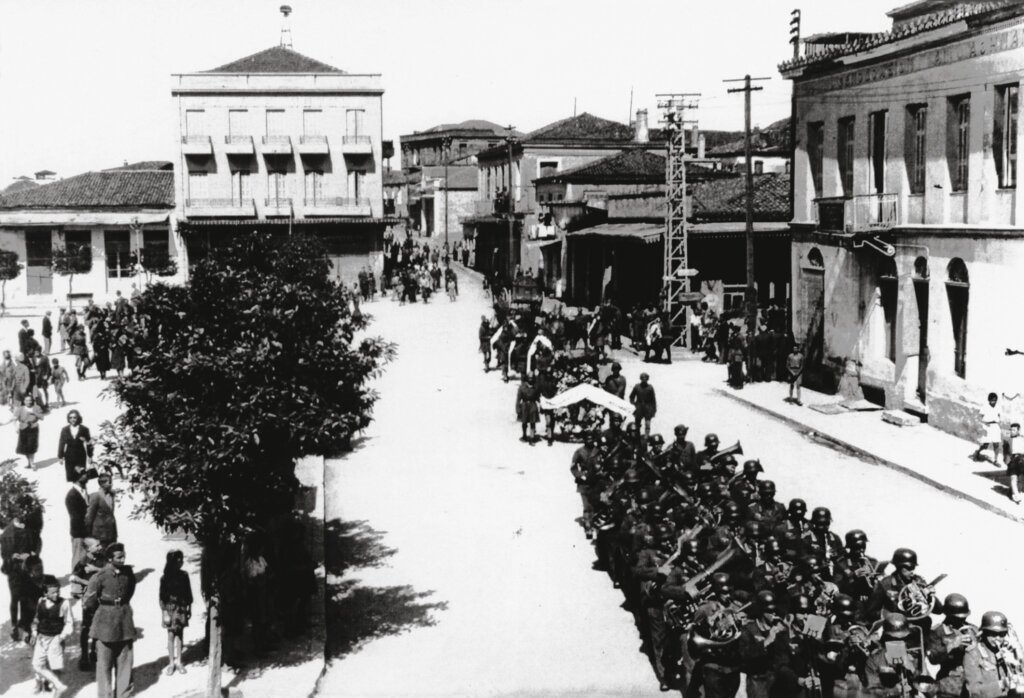 Φωτογραφία: Αγρίνιο 1944 Η Γερμανική μπάντα προπορεύεται παιανίζοντας νεκρικά εμβατήρια
