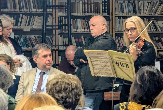 Ανάμεσα στις λέξεις και τις σκέψεις, η μουσική της Βίλμας Τσόγκα, με το βιολί της και ήχους από Μπαχ, έδωσε στη βραδιά το συναίσθημα που δεν χωρά πάντα στις αναλύσεις. Και το κλείσιμο ήρθε ήσυχα, ανθρώπινα, με έναν φροντισμένο μπουφέ από την Ελπίδα Σαλούρου — σαν υπενθύμιση ότι η μνήμη δεν είναι μόνο λόγος, αλλά και συνάντηση.