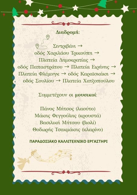 Το κάλεσμα του Συλλόγου είναι ανοιχτό: να συναντηθούν οι άνθρωποι της πόλης, να ανταλλάξουν ευχές και να τιμήσουν την παράδοση που εξακολουθεί να ενώνει τις γενιές, ιδιαίτερα τις ημέρες των Χριστουγέννων.