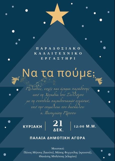 Το κάλεσμα του Συλλόγου είναι ανοιχτό: να συναντηθούν οι άνθρωποι της πόλης, να ανταλλάξουν ευχές και να τιμήσουν την παράδοση που εξακολουθεί να ενώνει τις γενιές, ιδιαίτερα τις ημέρες των Χριστουγέννων.