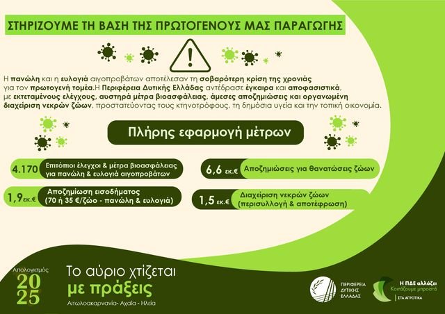 Στον τομέα της επιχειρηματικότητας, όπου υλοποιούνται 113 επενδυτικά σχέδια μεταποίησης συνολικού ύψους 28,8 εκατ. ευρώ, ενισχύονται πολύ μικρές και μικρές επιχειρήσεις με 23 εκατ. ευρώ, ενώ ο ψηφιακός μετασχηματισμός μέσω του DigiWest χρηματοδοτείται με 4 εκατ. ευρώ, διαμορφώνεται ένα πλέγμα παρεμβάσεων που αποσκοπεί στη μετάβαση της τοπικής οικονομίας σε πιο ανταγωνιστικά και ανθεκτικά πρότυπα, την ώρα που στον αγροτικό τομέα διατίθενται 35 εκατ. ευρώ για δράσεις στήριξης και 22 εκατ. ευρώ για Σχέδια Βελτίωσης, ενώ έχουν υποβληθεί προτάσεις 120 εκατ. ευρώ για έργα άρδευσης και αντιμετώπισης της λειψυδρίας καθώς και τεκμηριωμένες προτάσεις αποζημιώσεων ύψους 150 εκατ. ευρώ για βασικές καλλιέργειες, γεγονός που αναδεικνύει τη βαρύτητα που αποδίδεται στην πρωτογενή παραγωγή.