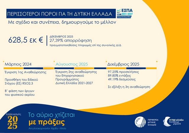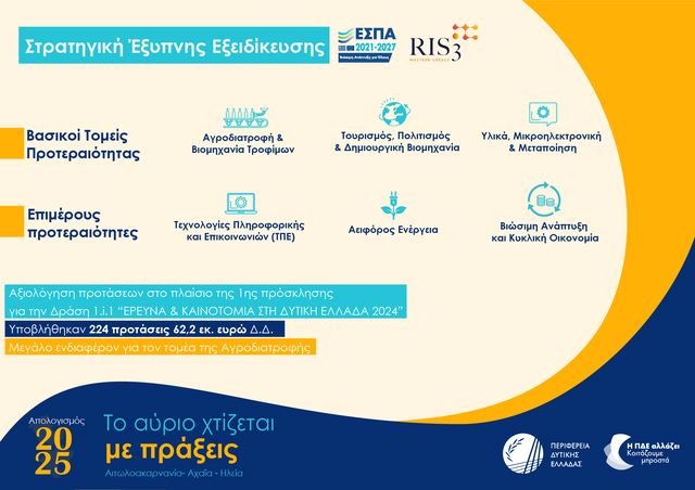 Το 2025, όπως το περιέγραψε ο Περιφερειάρχης Δυτικής Ελλάδας Νεκτάριος Φαρμάκης κατά την ειδική συνεδρίαση λογοδοσίας του Περιφερειακού Συμβουλίου στις 11 Φεβρουαρίου 2026, αποτέλεσε τη χρονιά κατά την οποία η Δυτική Ελλάδα, έχοντας αφήσει πίσω της μια μακρά περίοδο εσωστρέφειας και αμυντικών αντανακλαστικών, πέρασε σε ένα νέο επίπεδο διεκδίκησης, εξωστρέφειας και αποτελέσματος, καθώς – όπως υπογράμμισε – δεν αρκείται πλέον στο να ακολουθεί τις εξελίξεις αλλά επιδιώκει να βρίσκεται στον πυρήνα τους, διεκδικώντας πρωτιές και συμμετέχοντας ενεργά σε κάθε σοβαρή συζήτηση που αφορά το μέλλον του τόπου και της ίδιας της Αυτοδιοίκησης, με την πεποίθηση ότι πρόκειται για μια περιφέρεια χωρίς «ταβάνι», η οποία μπορεί να μετατρέψει τις δυνατότητές της σε απτό αναπτυξιακό αποτύπωμα.