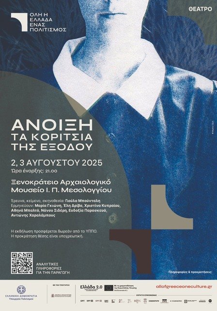 Στο Ξενοκράτειο Αρχαιολογικό Μουσείο Μεσολογγίου θα παρουσιαστεί στις 2 και 3 Αυγούστου η θεατρική παράσταση «Άνοιξη: Τα κορίτσια της Εξόδου», μια πρωτότυπη δραματουργία με κοινωνικό και ιστορικό αποτύπωμα, βασισμένη σε αληθινές ιστορίες γυναικών από την ελληνική περιφέρεια. Η είσοδος είναι δωρεάν, με υποχρεωτική την προκράτηση θέσης.